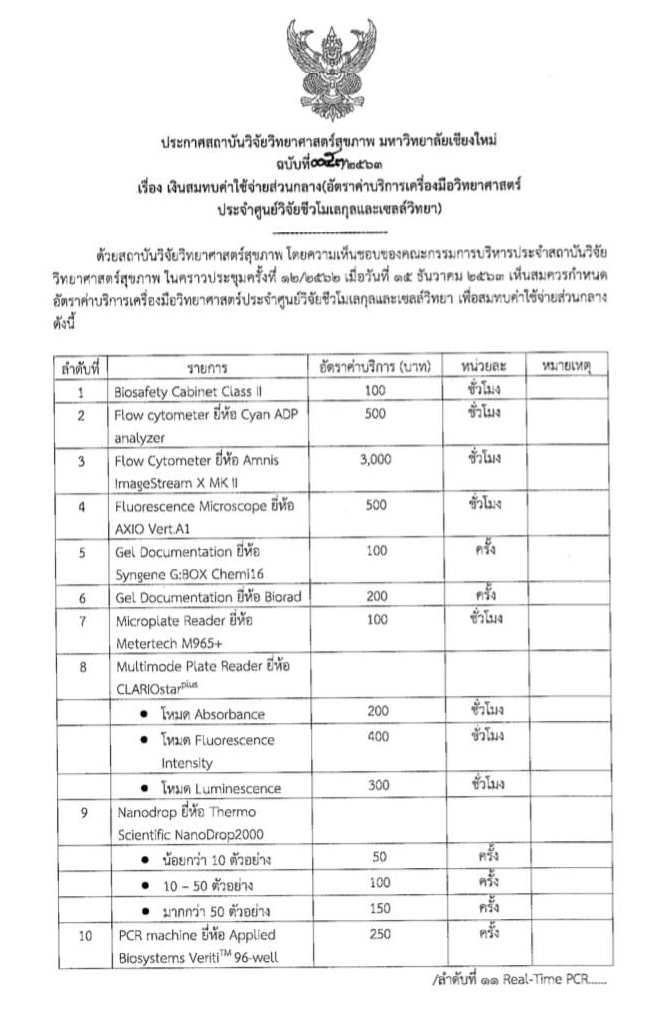 - ห้องปฏิบัติการด้านเซลล์และภูมิคุ้มกันวิทยา: